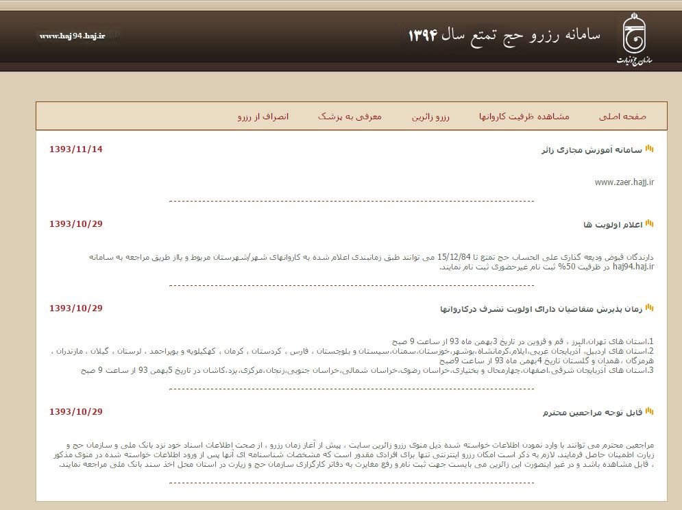 - اعلام در سایت سازمان www.haj.ir و www.haj.ir