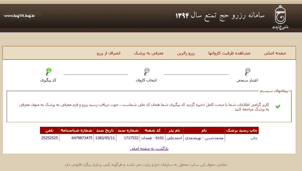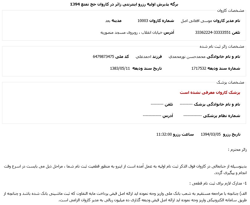 - شماره ودیعه یا دعوتنامه ( شماه سند یا شماره زائری)